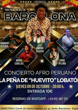 Musico, percusionista, compositor, zapateador. Una leyenda músical de la cultura afro peruana. Llega por primera vez a Europa con la ruta afro peruana. Para deleitarnos con su Peña de valses, festejos, zamacuecas y landos. Junto a un grupo de músicos de larga trayectoria, conforman la alquimia perfecta para una noche de Peña criolla afro peruana inolvidable.